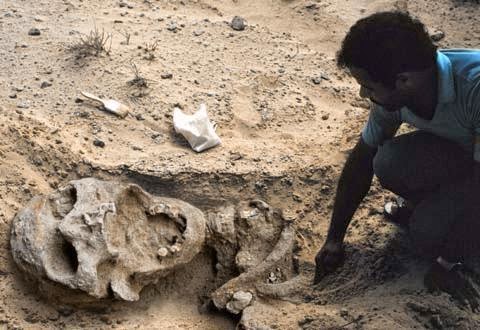 - A finales de los 50 del siglo pasado, mientras se construía una carretera cerca de Homs (al sudeste de Turquía), se hallaron varias tumbas de gigantes. Se recuperó un fémur que medía unos 120 cm., lo que daría una altura total de unos 4,50 metros. Este hueso fue luego reproducido y exhibido en un famoso museo “creacionista” (Mount Blanco Fossil Museum, Texas, EE UU).